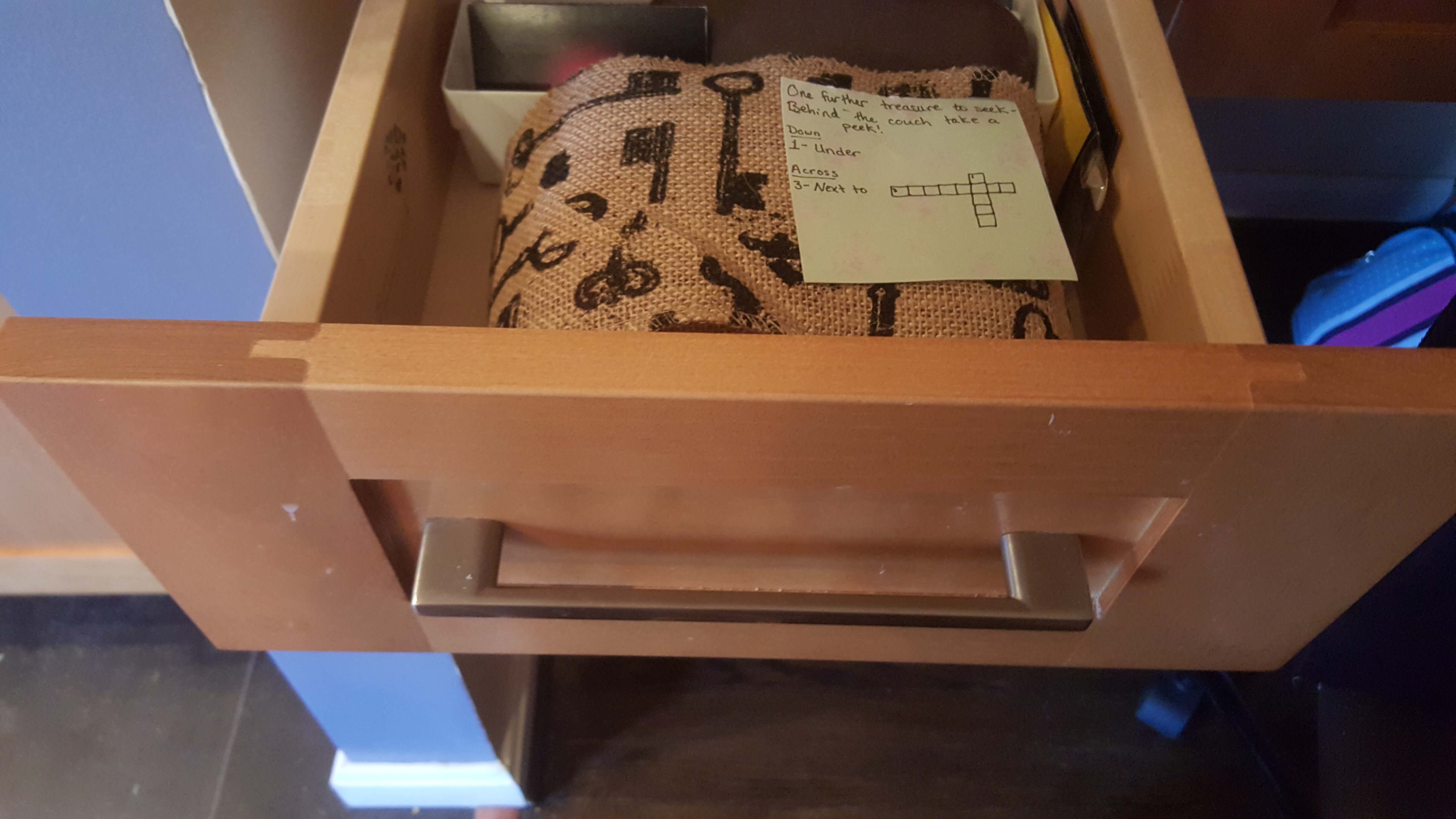 Ok, turns out the whole gift couldn't fit in the drawer. The rest of it is behind the couch!