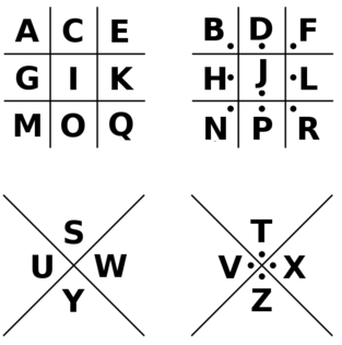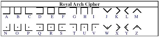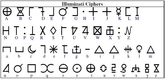The second (marked with a K and key charms) is the Illuminati cipher.