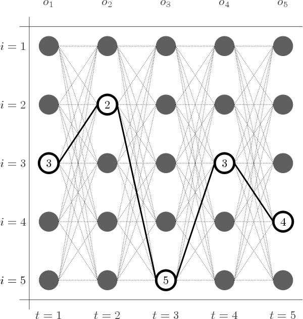 Twiddling my pencil, I attempted to recall some of the homework problems from my Machine Learning and Bayesian Probability courses. Consider that there exists a series of observations that are the results of an equal-length series of hidden events. It is possible to calculate the most probable series of hidden events that caused the observations if the underlying state-transition probabilities for those hidden events are known. Such a model is known generally as a Hidden Markov Model (HMM) and the class of problems that aim to uncover the most likely series of hidden events is called Most Probable Explanation (MPE). If I could represent the ciphertext and its underlying plaintext-key pair as a HMM, I would be able to use a dynamic programming algorithm known as the Viterbi Algorithm to solve it.