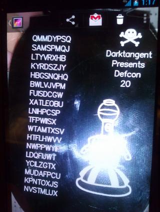 Fast forward three years. Defcon 23 has concluded and the hackers have begun their journeys back home. MLF did not win the badge challenge, but I’m still feeling the itch. As I line up to board my flight back to the East coast, I notice that 1o57 is on my plane and I remember the cipher etched in this year’s Uber Badge coin. As the plane climbs to 10,000 ft, I crack open my laptop and transcribe the cipher text into my program’s input. Seconds later, I have a 90% solution – plenty enough to recover the original key from an online search. I write the solution on a scrap of paper and hand it to 1o57 as I deplane.